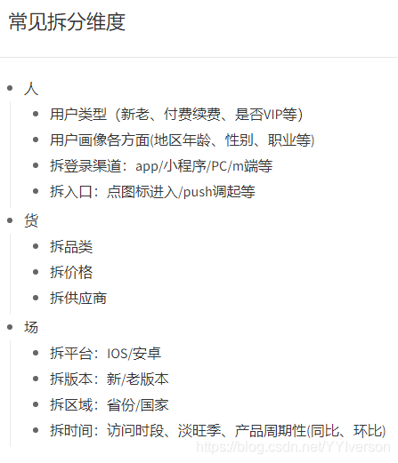 以上是几种常见的初步拆分维度,通过初步拆分,定位原因大致范围。