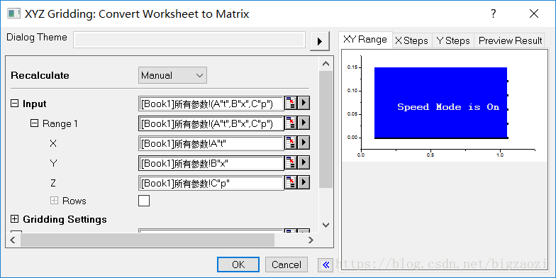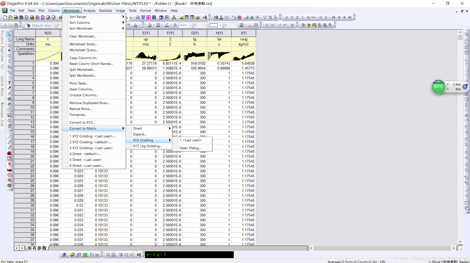 第一步: 将数据转化为矩阵格式:worksheet → convert to Martrix → XYZ Gridding